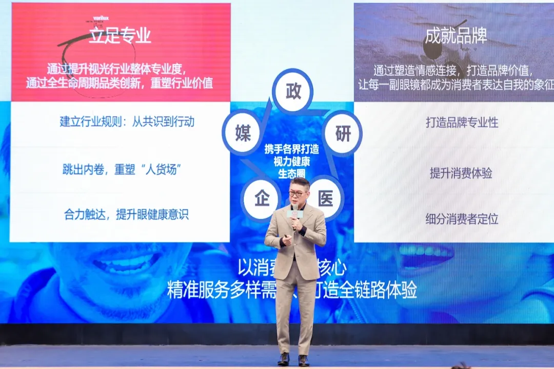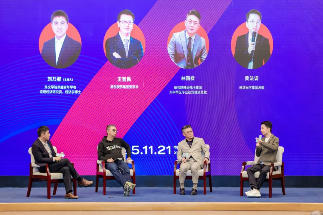 本届眼镜业鹭岛论坛以“预见・视界”为主题,星创视界集团董事长王智民、依视路陆逊梯卡集团大中华区专业视觉健康总裁林国樑、雅瑞光学集团总裁黄法调等行业领军人物齐聚现场。嘉宾们以跨周期思维与跨学科视野,直面行业痛点、破解发展难题,通过实战经验与宏观洞察的碰撞凝聚行业共识,为眼镜行业在经济周期更迭与产业转型关键期,锚定发展方向。