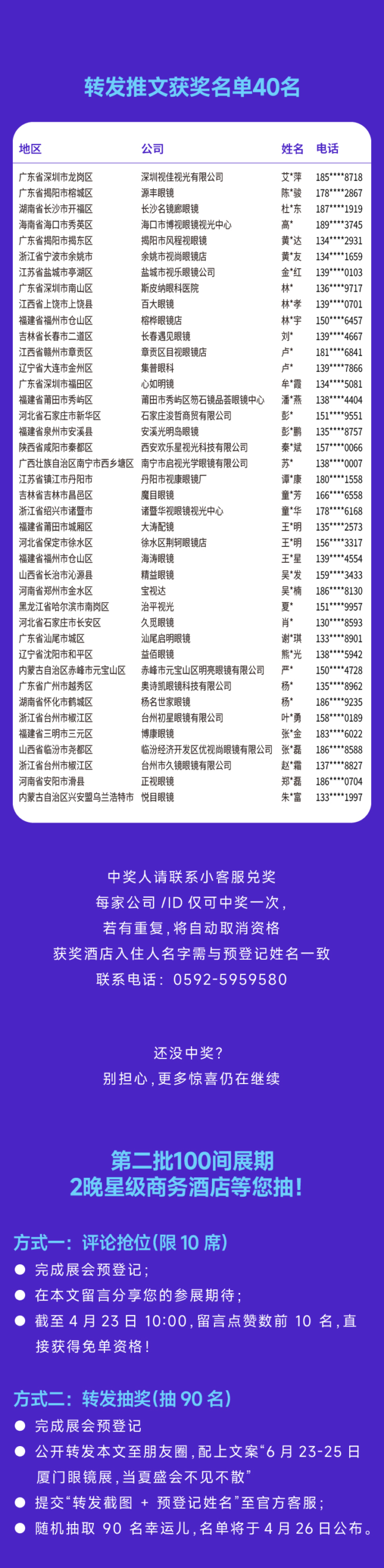 锚定六月黄金档 | 2026厦门眼镜展,多元品类一站备齐(第一批酒店中奖名单揭晓)